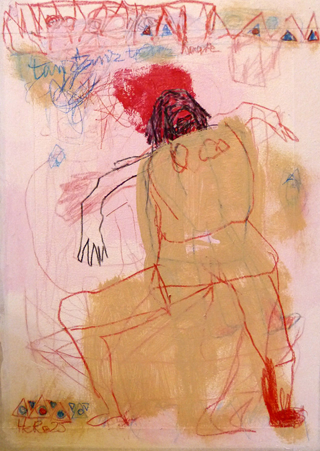 erste Schritt, ein Annähern, dann folgen Linien, Farben, die